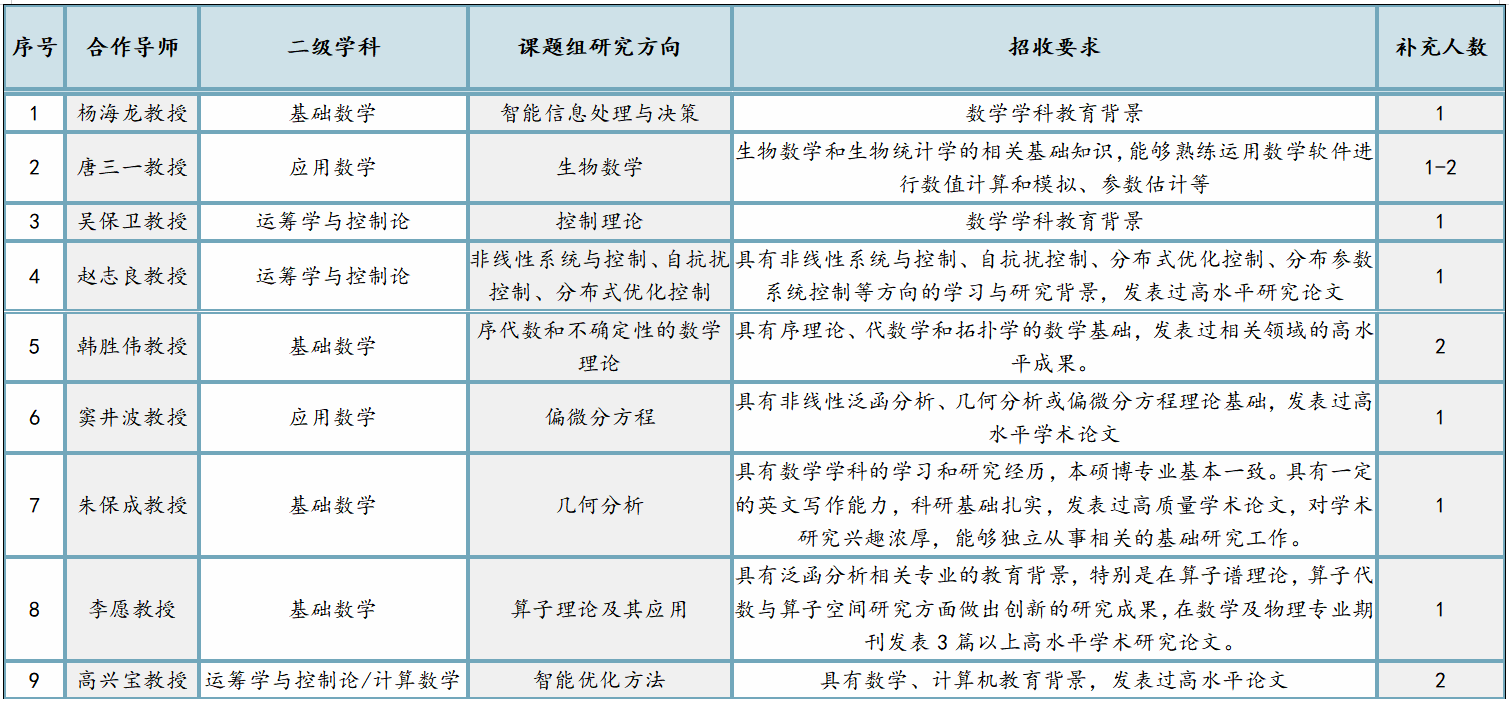 3.具备从事科学研究工作的基本素质和潜力,且符合各流动站招聘的岗位要求。