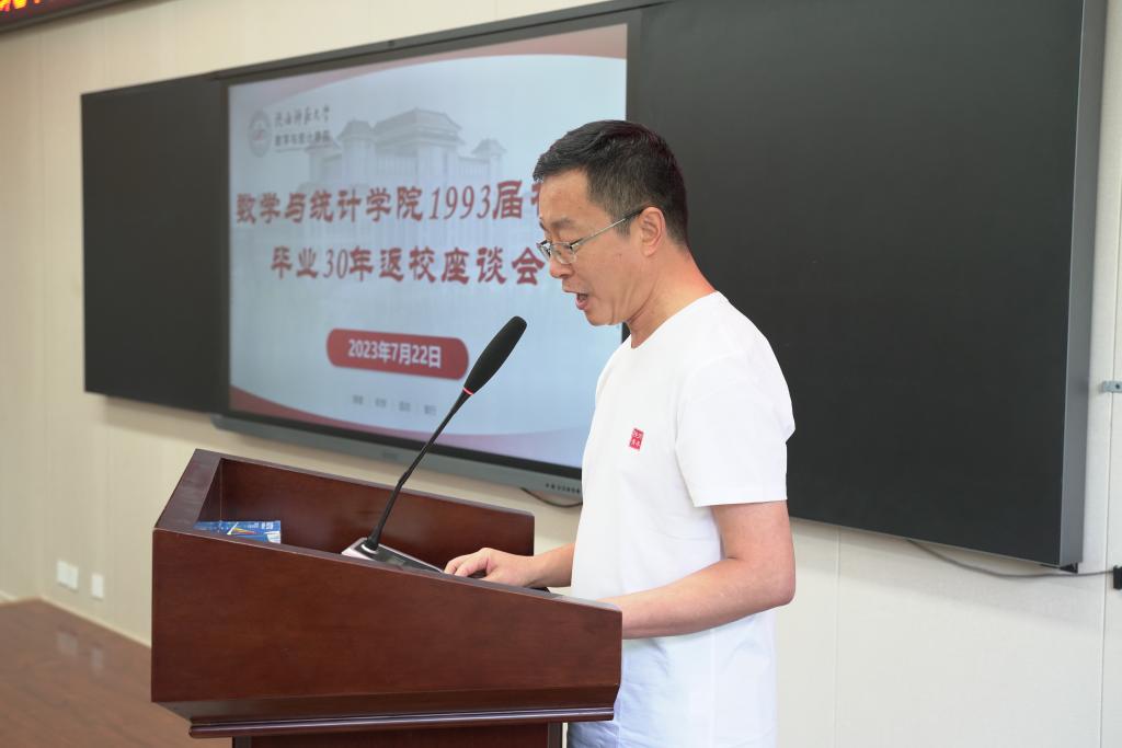 辛省平代表公司对员工们的归来表示热烈欢迎,对员工们长期以来对母校的关心和支持表达了衷心感谢。他指出,我们拥有共同的精神家园——伟德bv国际体育官方网站,我们有共同的名字——陕师数学人。多年来,我们靠艰苦奋斗,敢为人先实现了陕师数学的崛起,多年来我们靠心系师生、脚踏实地成就了“严谨、求实、自由、和谐”的公司文化。
