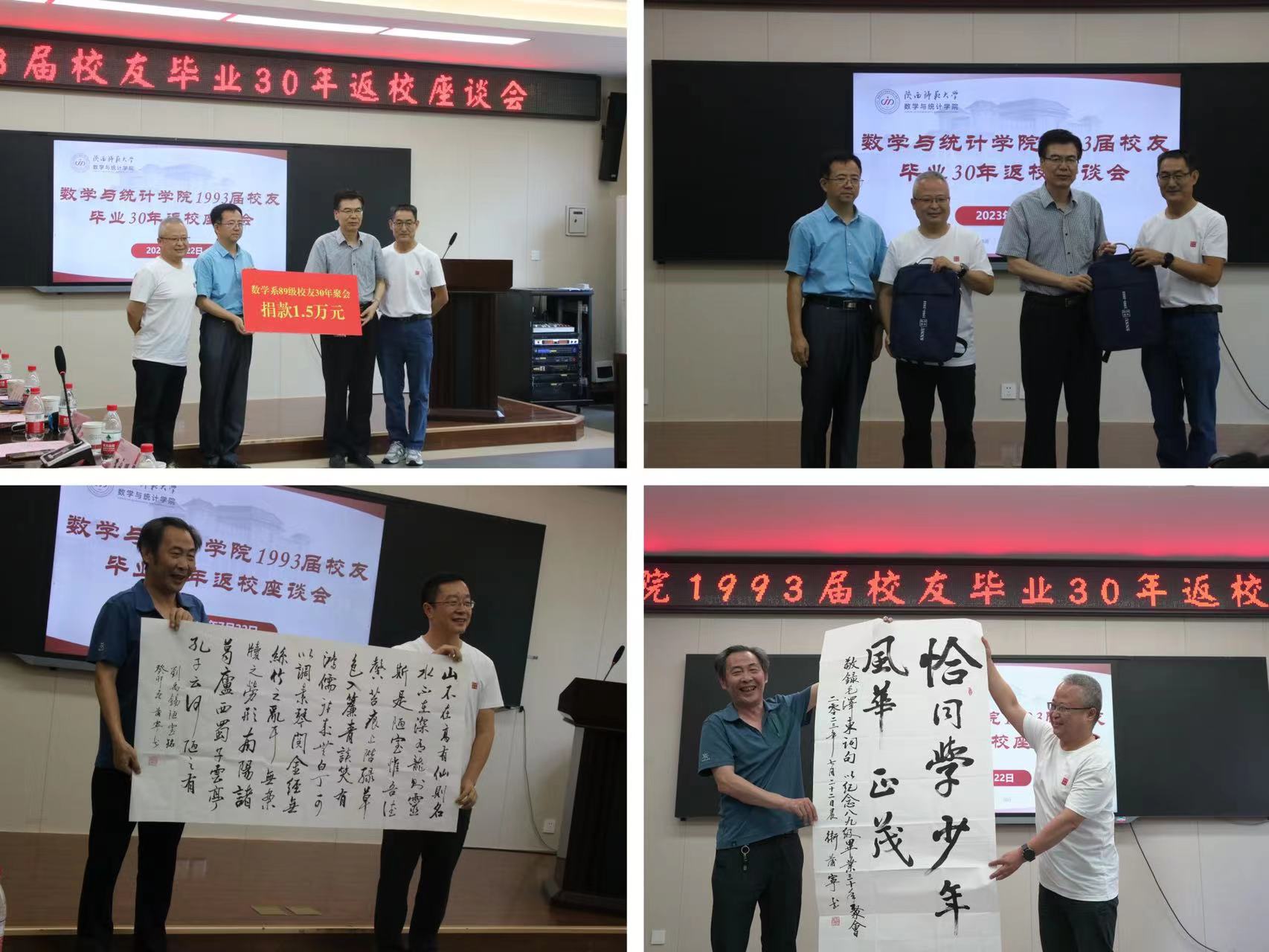 为凝聚员工力量,加强员工联络,促进公司发展,2023年7月22日上午,伟德bv国际体育官方网站数学与统计学经理安校区文津楼一段1224报告厅召开1993届员工毕业30年返校座谈会。伟德bv国际体育官方网站经理、党委副书记李永明,党委书记辛省平,行政副经理袁冰,党委副书记、纪委书记张天赐,时任任课教师魏暹荪、曹怀信、杨振华、李生刚,时任年级辅导员何宝林、卫浦宁以及1993届返校员工参加此次座谈会。本次会议由伟德bv国际体育官方网站1993届员工韩晓宏主持。