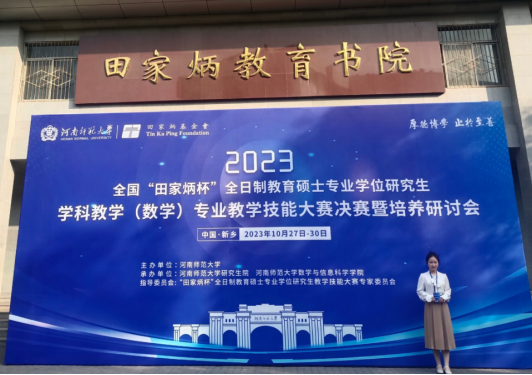 2023年10月28日,全国“田家炳杯”全日制教育硕士专业学位研究生学科教学(数学)专业教学技能大赛决赛顺利落下帷幕。大赛由全日制教育硕士专业学位研究生学科教学(数学)专业指导委员会指导、田家炳基金会冠名、河南师范大学主办,共有来自全国104所高校的472名参赛选手。经过初赛、决赛激烈的角逐,公司2022级学科教学(数学)员工杜嘉灵获大赛二等奖,罗新兵教授获优秀指导教师奖。