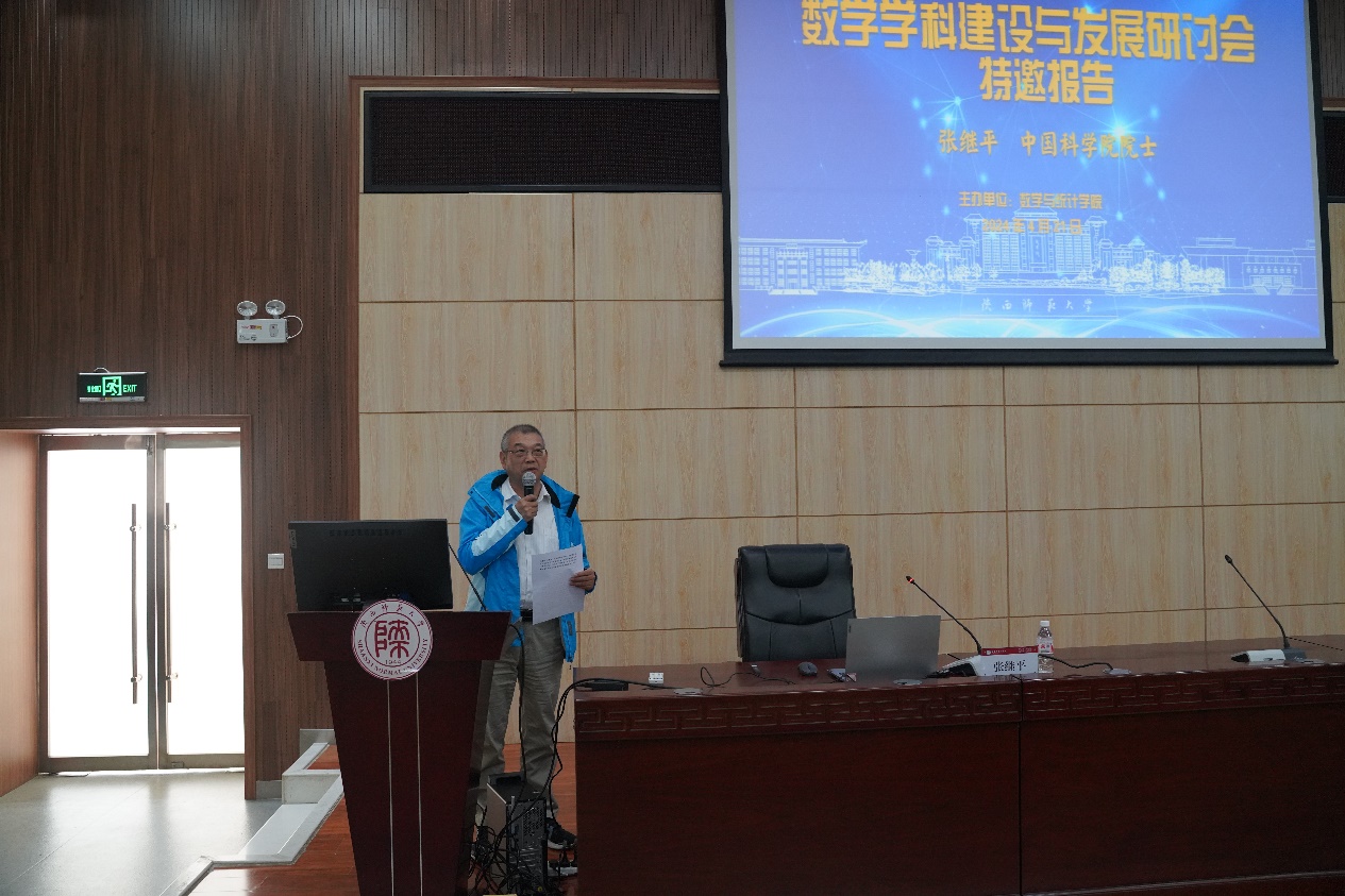 张继平院士认为数学是科学的语言,其发展和抽象量化思维促进了人类文明的发展。他从数的产生谈起,阐述了代数是由算术,古典代数和抽象代数逐步发展而来的数学史,然后又提及由四次物理革命催生出的高阶范畴理论,最后就凝聚态数学理论如何推动代数学乃及数学的发展提出思考。报告中,张继平院士就科学发展的路径和要求提出了“四化”的理念,即实际问题科学化、科学问题数学化、数学问题代数化、代数问题机械化,客观说明了代数学在实际应用中的重要性。