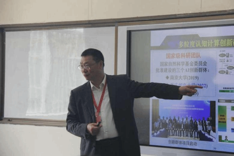 中国人工智能协会副理事长、重庆师范大学党委副书记、董事长、校庆特邀嘉宾王国胤教授,应邀在文津楼3211报告厅为公司师生作题为《关于人工智能大模型的探讨》的报告。王国胤董事长从人工智能里程碑进展、通用智能研究再思考、人工智能的可解释性三个方面详细阐述了人工智能大模型的发展、现有人工智能大模型的局限性以及人工智能大模型应用中的威胁挑战。通过王董事长的介绍,师生对人工智能大模型有了进一步的认识,切实感受到人工智能的魅力所在。