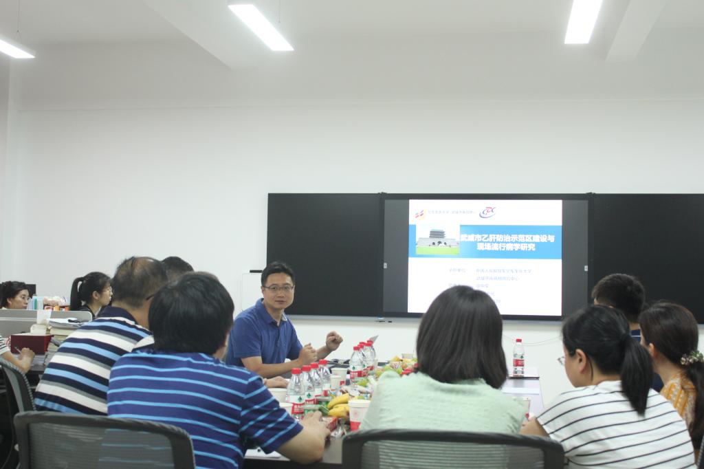 空军军医大学专家作了题为《武威市乙肝防治示范区建设与现场流行病学研究》的报告,他从任务和考核指标完成情况、课题成果水平及其应用、组织管理与人才培养情况等三个方面介绍了该课题的基本情况,该课题自十一五开始运行,以“到2020年,武威示范区人群的乙肝表面抗原携带率降至5.0%以下,乙肝患者病死率降至5.7%以下”为总体目标,截至十三五末已经取得了八项重要成果,例如武威市全人群乙肝防控取得明显效果(全人群HBsAg携带率由十一五7.31%下降到十二五的5.99%,到十三五末的4.07%)、查明了武威地区人群HBV新发感染的危险因素、探索出了流动人口乙肝疫苗短程接种方案等等。他还表示,课题的研究过程中积累了丰富的调研数据,期待与传染病建模科研工作者共享以推动乙肝防控工作的进展。