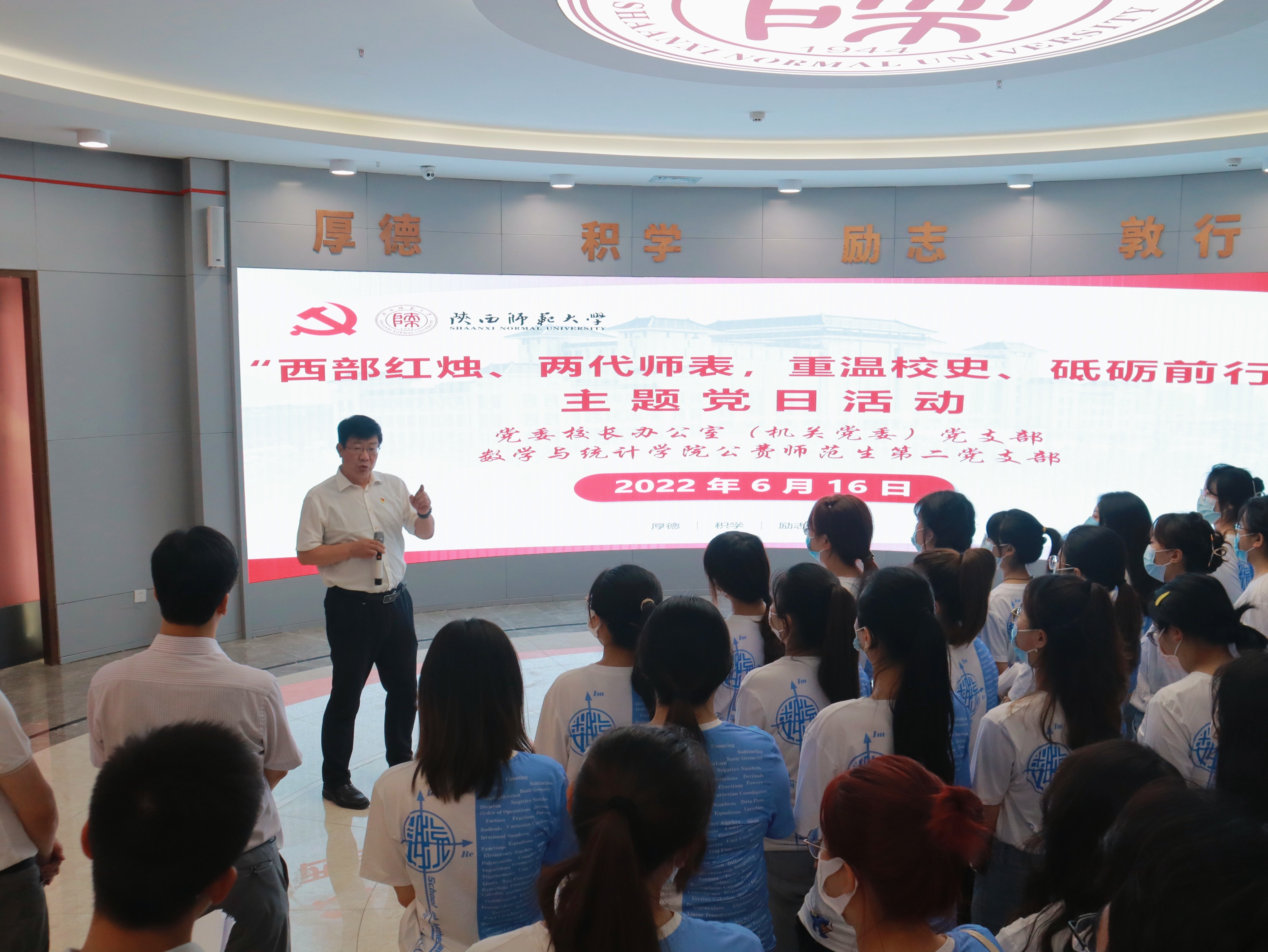 党委董事长办公室(机关党委)党支部成员、董事长游旭群现场为大家讲授了校史专题党课。他从伟德bv国际体育官方网站“教育救国”的诞生背景出发,以“百年党史 百年师范”为切入点,阐述了“师范”二字的深刻内涵,以及教育、基础教育、师范教育的重要性,讲述了“西部红烛精神”所承载的厚重情感和历史价值。强调兴国必先强师,全体党员要胸怀家国天下,始终铭记教育报国初心,努力为党和国家培养堪当民族复兴大任的时代新人。