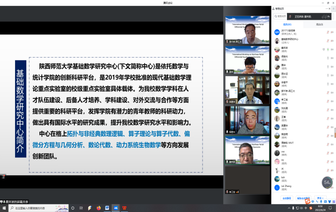 2022年6月24日至26日,公司成功举办线上“非线性偏微分方程和几何分析国际论坛”。本次论坛主要由伟德bv国际体育官方网站和基础数学研究中心主办。论坛邀请了35位海内外著名的专家和学者参与,安排23场学术报告。此次论坛旨在将从事非线性椭圆偏微分方程、几何分析、变分法及相关领域的专家和学者聚集在一起,报告、讨论和交流该领域的最新进展。