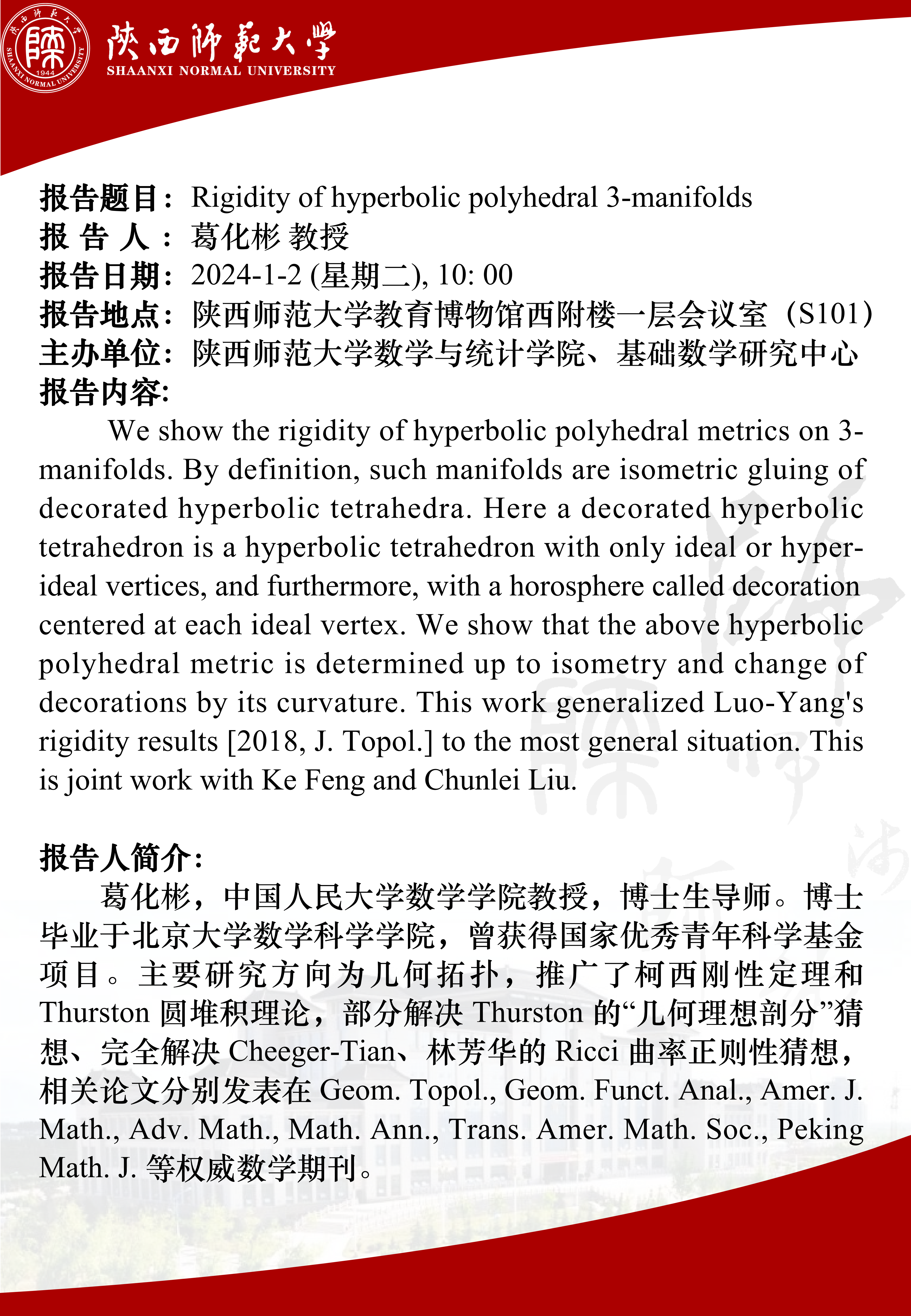 • 讲座日期: 2024-1-2 (星期二)