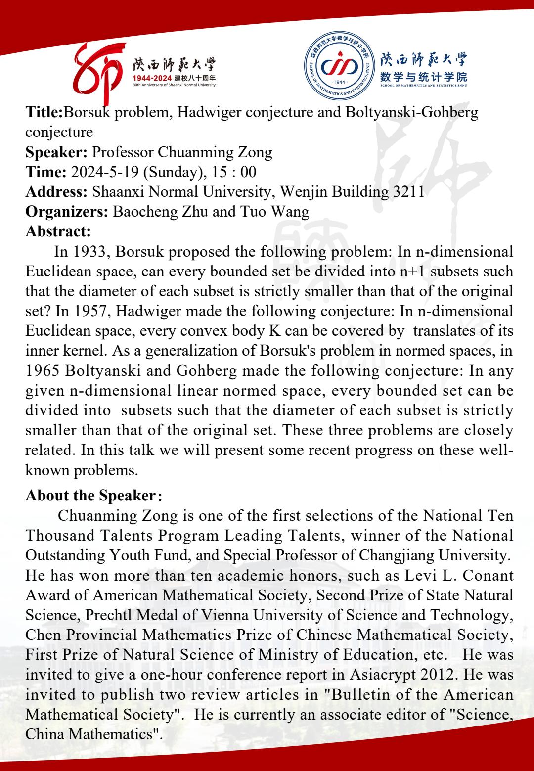 八秩同辉校庆系列38 Borsuk problem, Hadwiger conjecture and Boltyanski-Gohberg conjecture