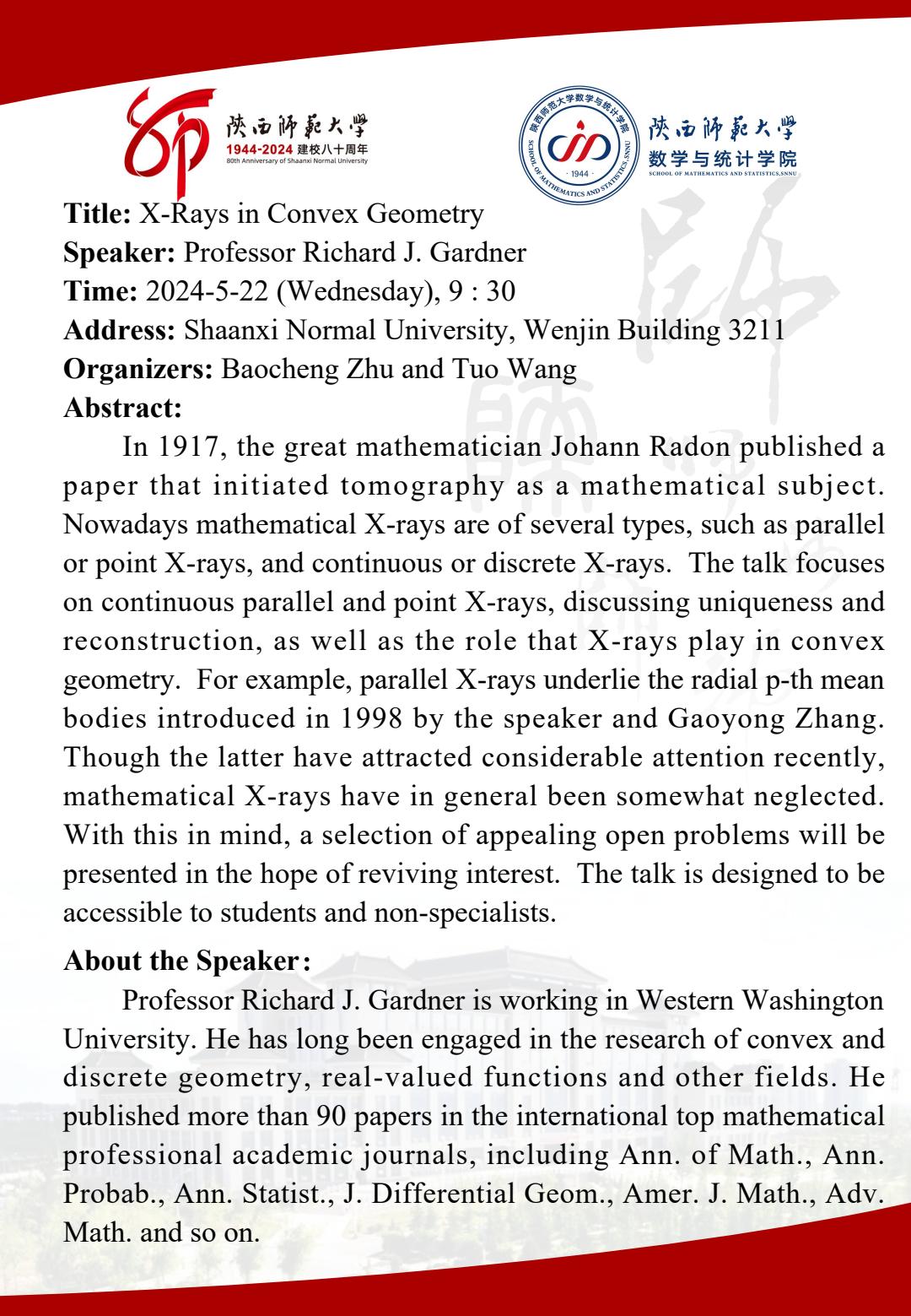 八秩同辉校庆系列40 X-Rays in Convex Geometry