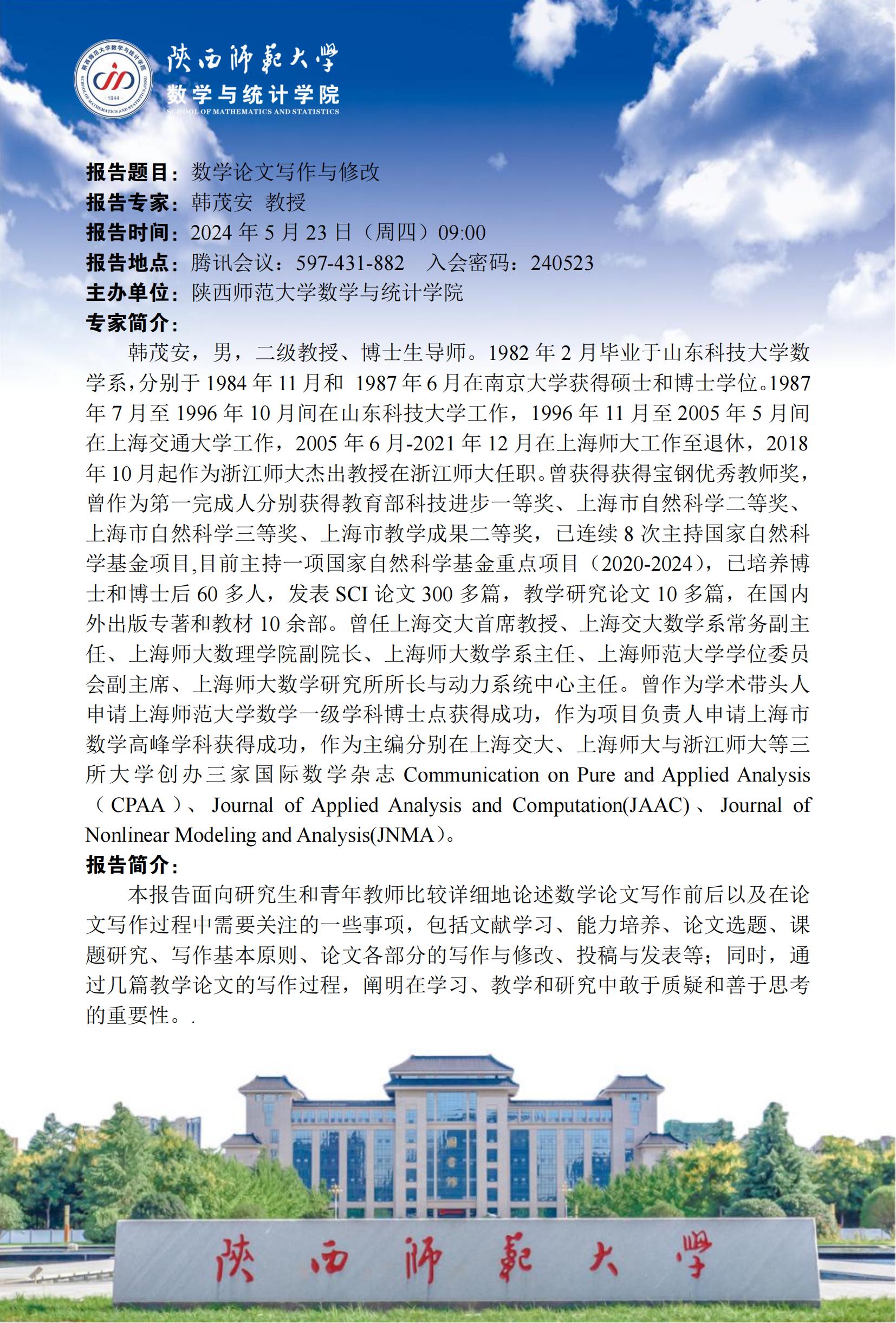 • 讲座日期: 2024-5-23(周四)
