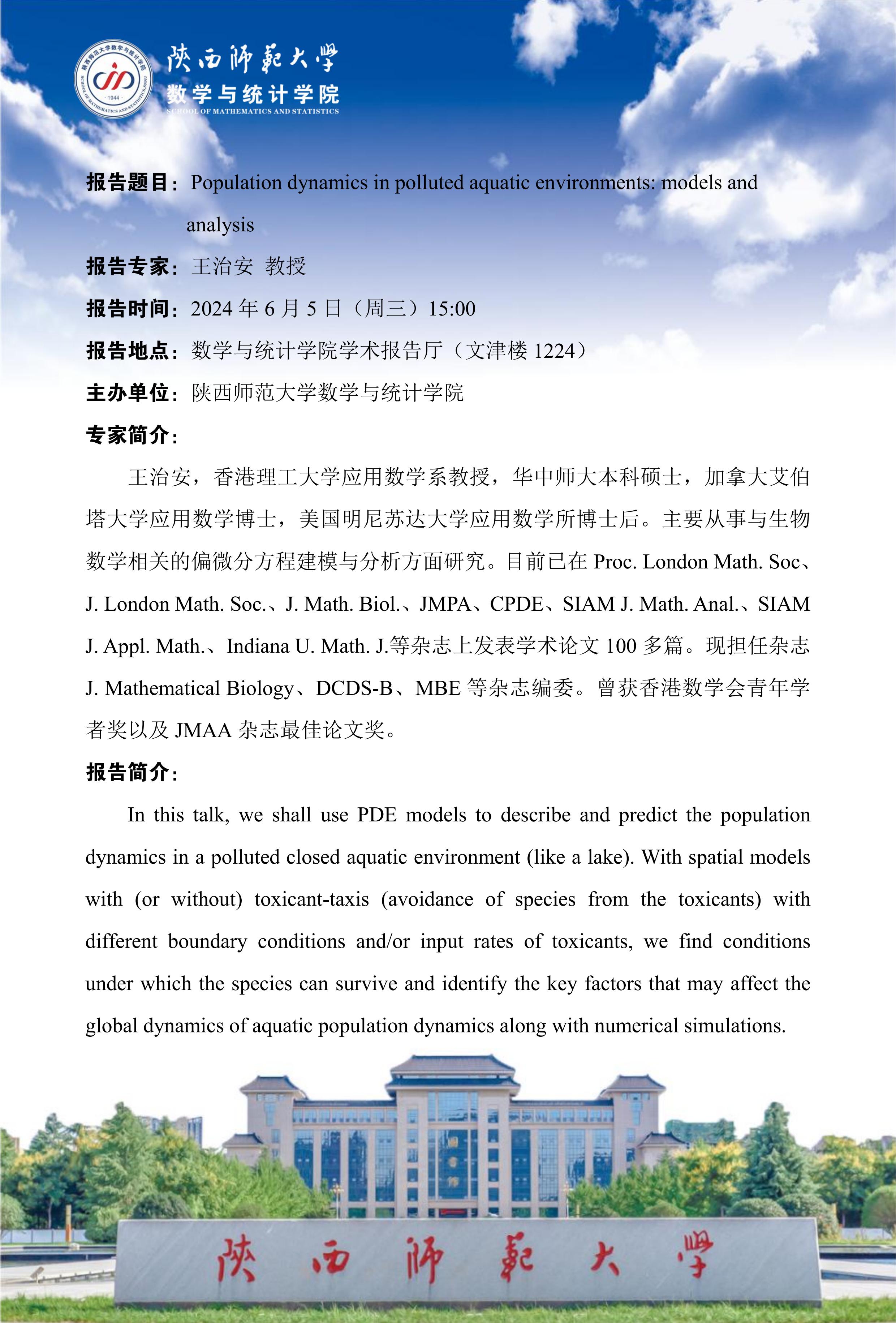 八秩同辉校庆系列54 Population dynamics in polluted aquatic environments: models and analysis