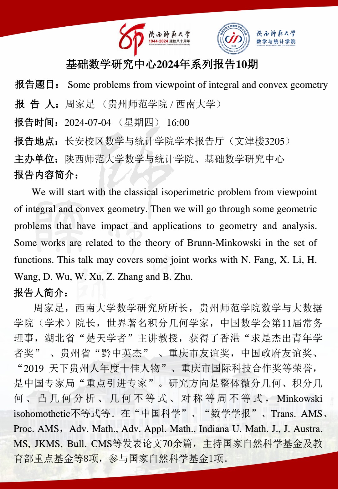八秩同辉校庆系列64 Some problems from viewpoint of integral and convex geometry