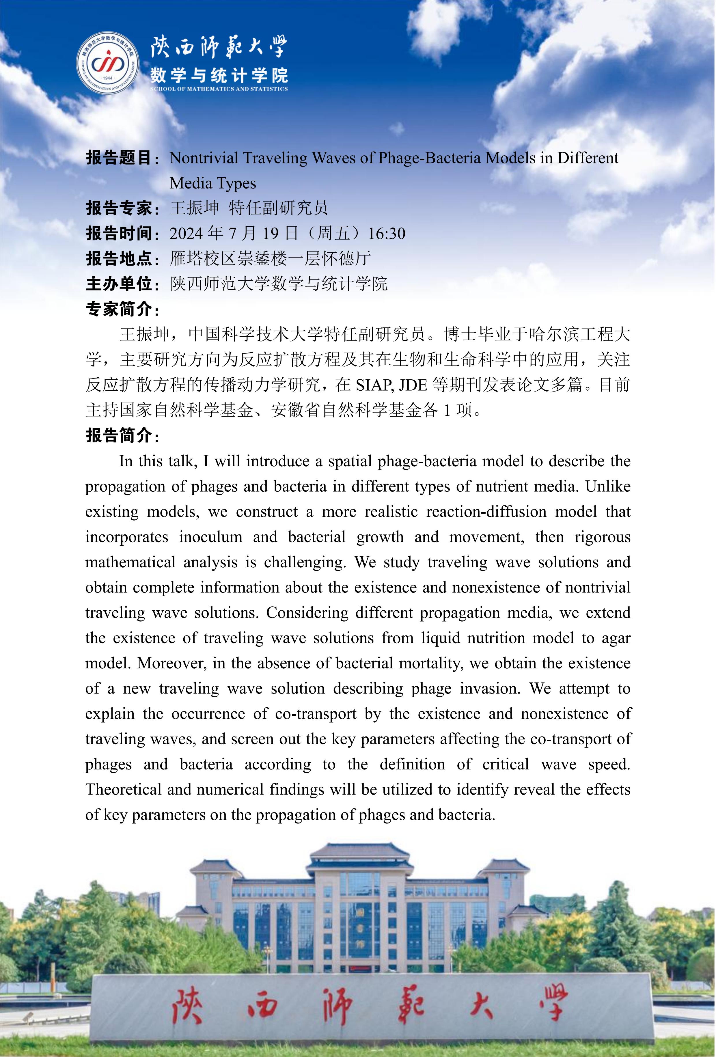 八秩同辉校庆系列77 Nontrivial Traveling Waves of Phage-Bacteria Models in Different Media Types