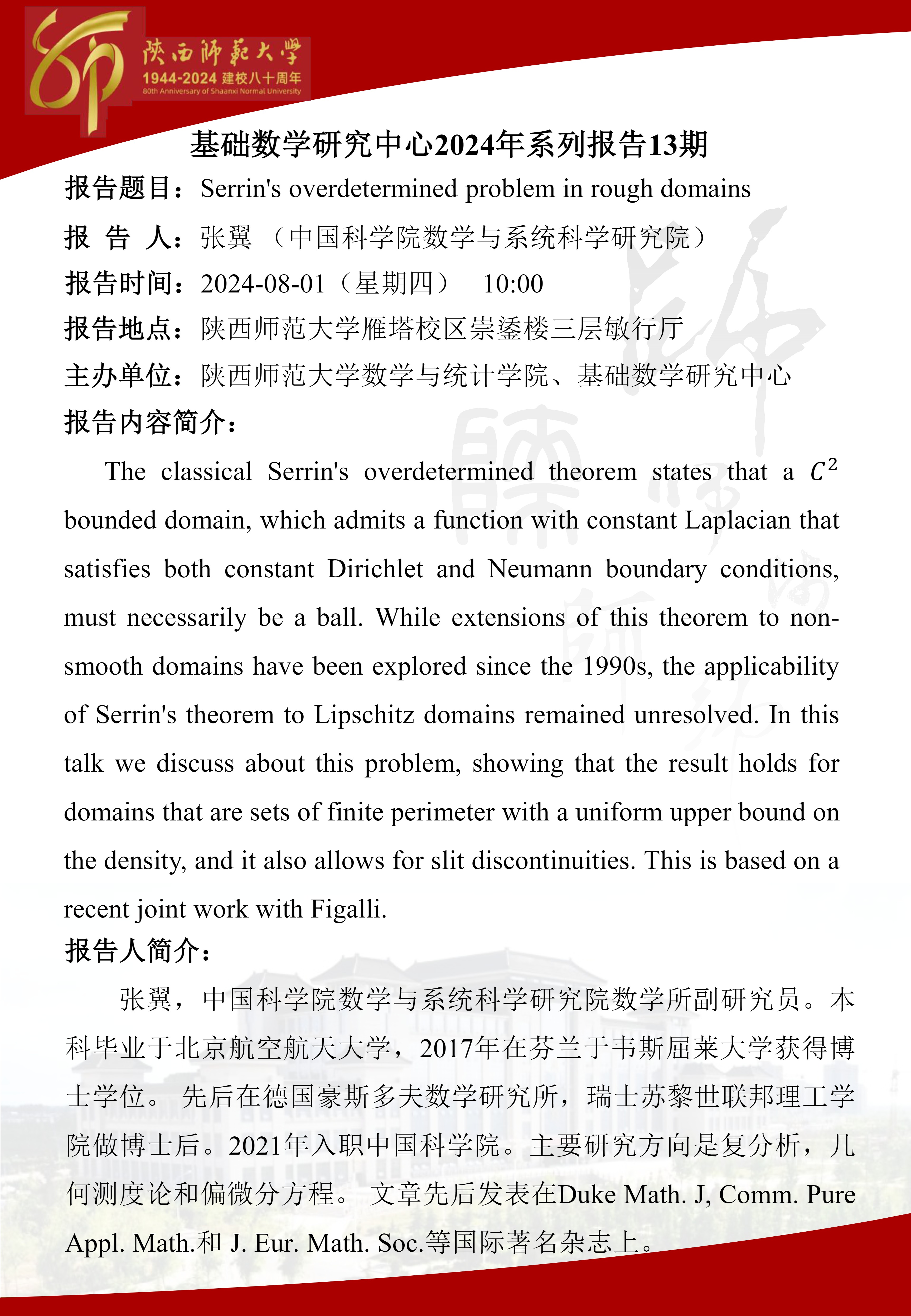 • 讲座人: 张翼 副研究员
