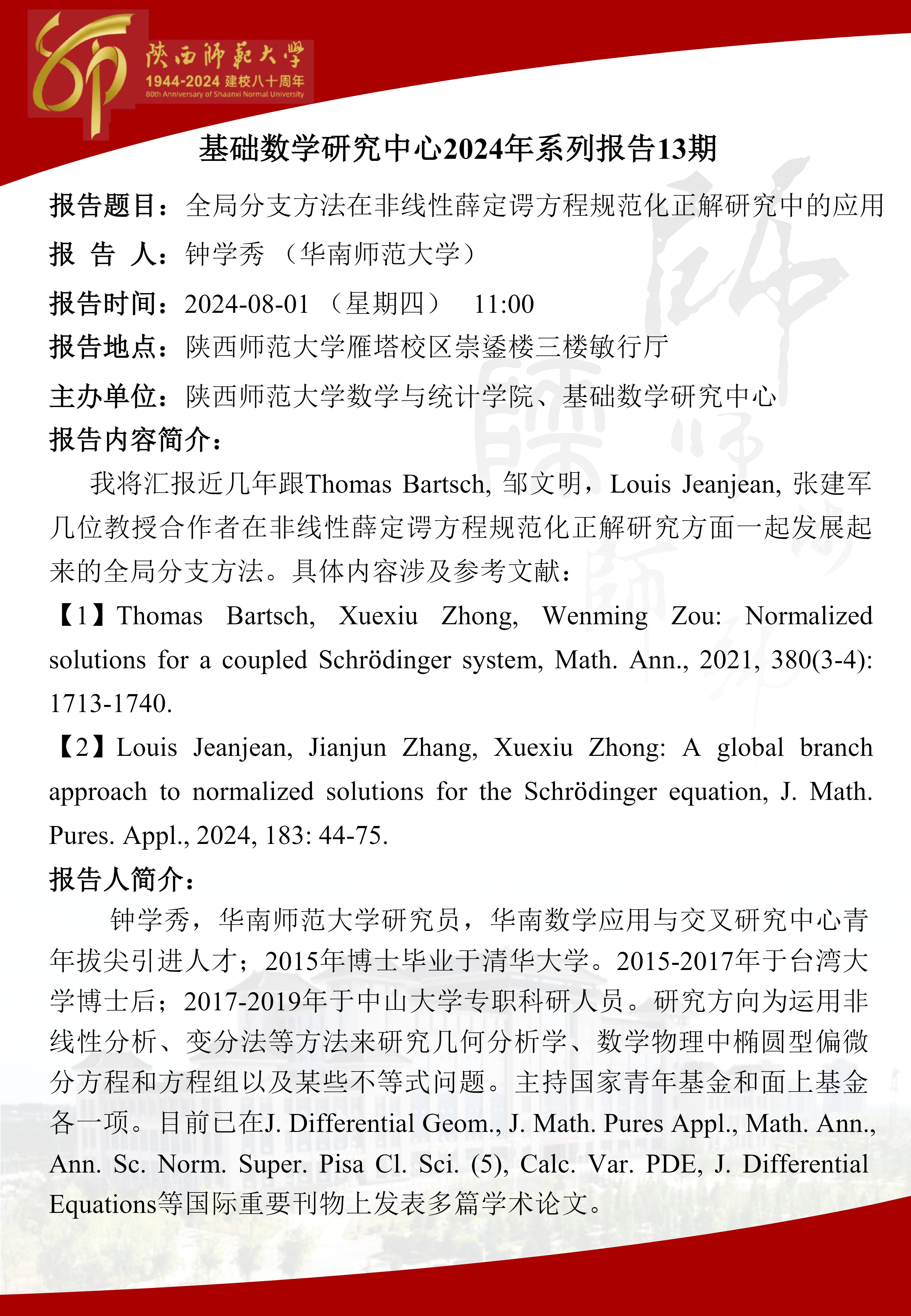 八秩同辉校庆系列83 全局分支方法在非线性薛定谔方程规范化正解研究中的应用