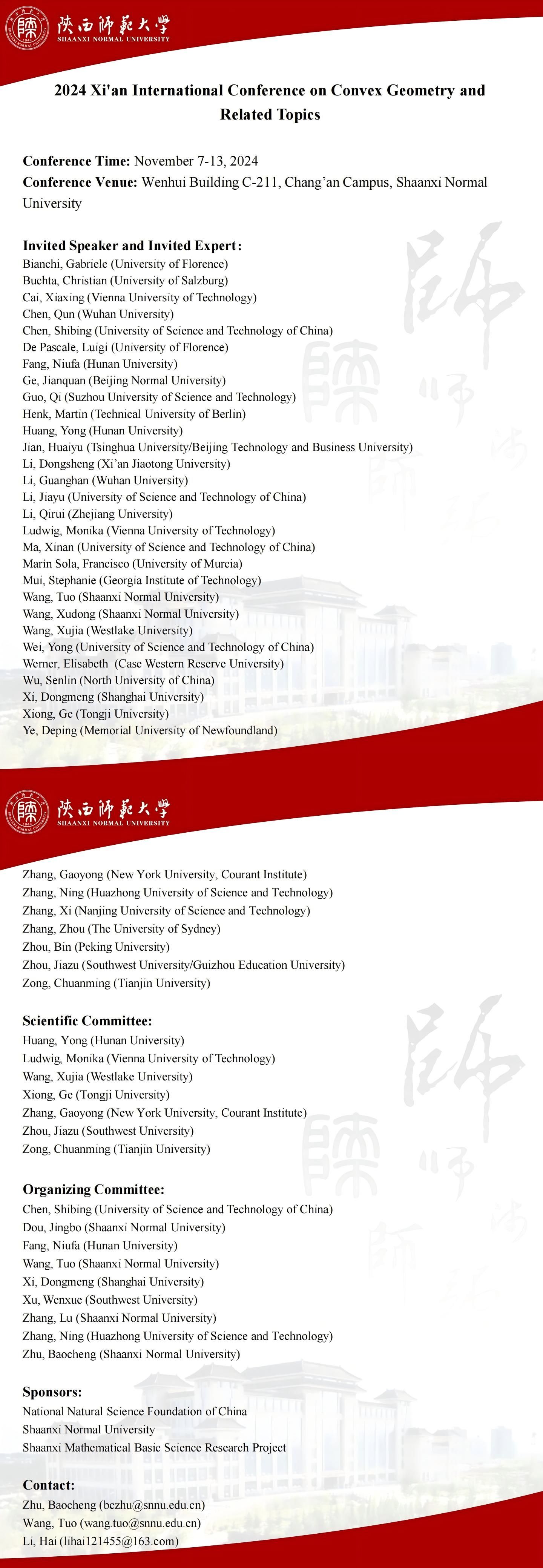 八秩同辉校庆系列101 2024Xi'an International Conference on Convex Geometry and Related Topics