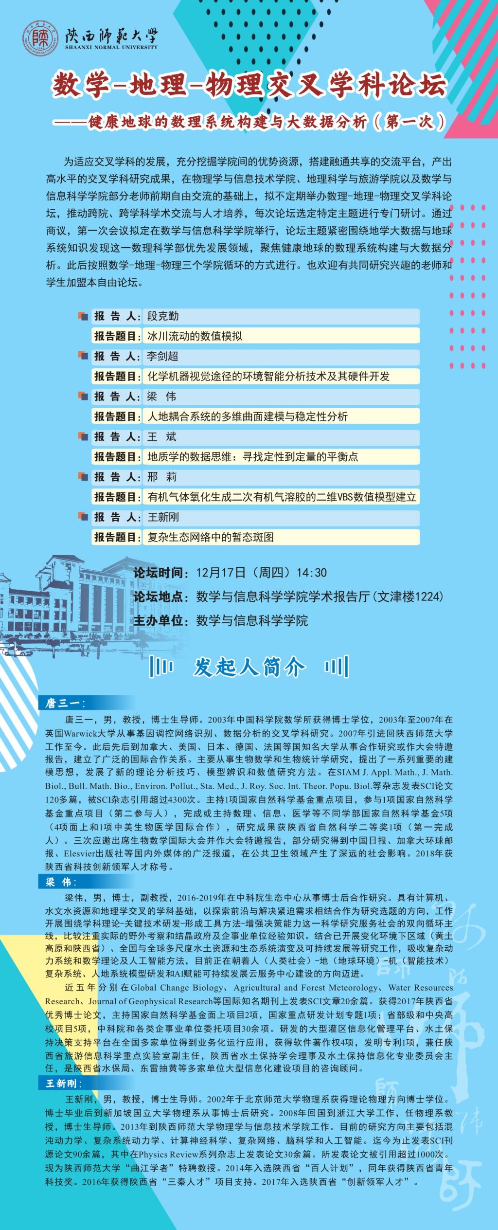 数学-地理-物理交叉学科论坛——健康地球的数理系统构建与大数据分析(第一次)