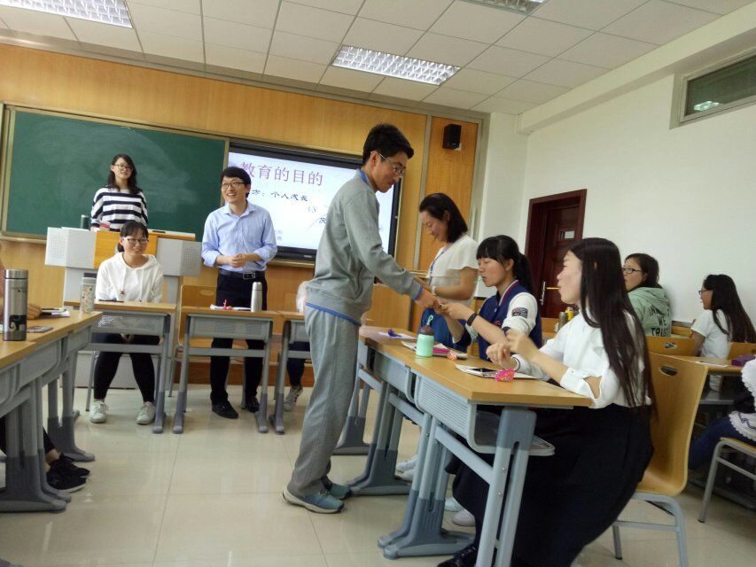 王乐老师担任此次辩论赛评委。在《中学教育学基础》课上,王老师为引导同学们追溯教育本源,并提高同学们的逻辑思维能力,策划了此次辩论赛。
