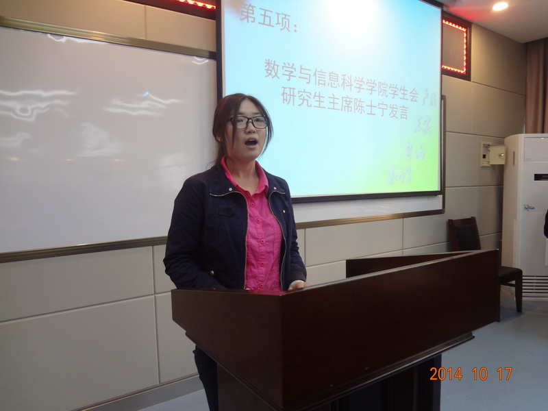 会上,公司分团委书记邹尚田宣读了新一届研究生会、员工会成员名单。2013级本科生冯芒同学带领全体研究生会、员工会成员进行了宣誓。新一届研究生主席陈士宁发言,并提出了对今后工作的设想:第一,完善制度建设,强化内部管理,在执行中探索,在实践中完善,在总结中提高;第二,打造精品活动,彰显研会特色,营造积极健康向上的校园文化氛围;第三,运用时代元素,服务广大同学,积极打造服务同学的沟通“微”平台。