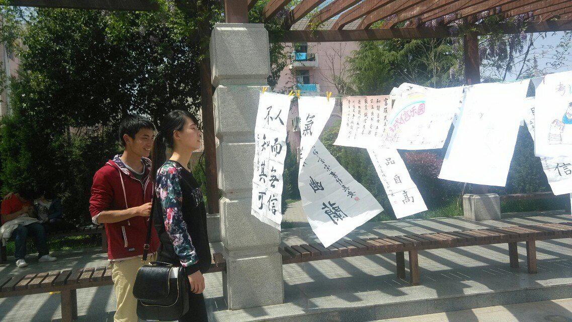 4月是师大诚信教育活动月,为积极响应公司号召,2015415日,数科院2013级数学二班在长安校区阳光苑门口举办了诚信教育主题书法、漫画、手抄报联展活动,旨在大力宣扬校园诚信理念。