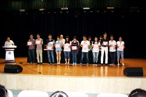 大会在共青团团歌声中拉开了帷幕。首先,公司团委副书记李爽作了工作汇报。她回顾了本年度员工会制度建设、校园文化建设及新媒体建设中所取得的可喜成绩,同时强调在工作中要及时发现和完善自身存在的不足,并向支持员工会工作的全体师生表示衷心感谢。随后,优秀团支书代表杨航发言,他提出在工作上要有团结协作、吃苦耐劳的奉献精神和严谨负责的工作态度,繁重的工作因有同学们的肯定而充满幸福感。伴随着同学们热烈的掌声,团委书记邹尚田宣读了《数学与信息科学公司20142015学年度共青团工作先进集体、先进个人的表彰决定》。随后,嘉宾们依次为优良学风示范班、素质拓展先进集体、班级建设贡献奖、科研创新先进个人、素质拓展先进个人、志愿服务先进个人、员工会“工作标兵”、员工会“优秀部长”、员工会“优秀副部长”、新媒体建设贡献奖等十个奖项的获奖代表颁奖。