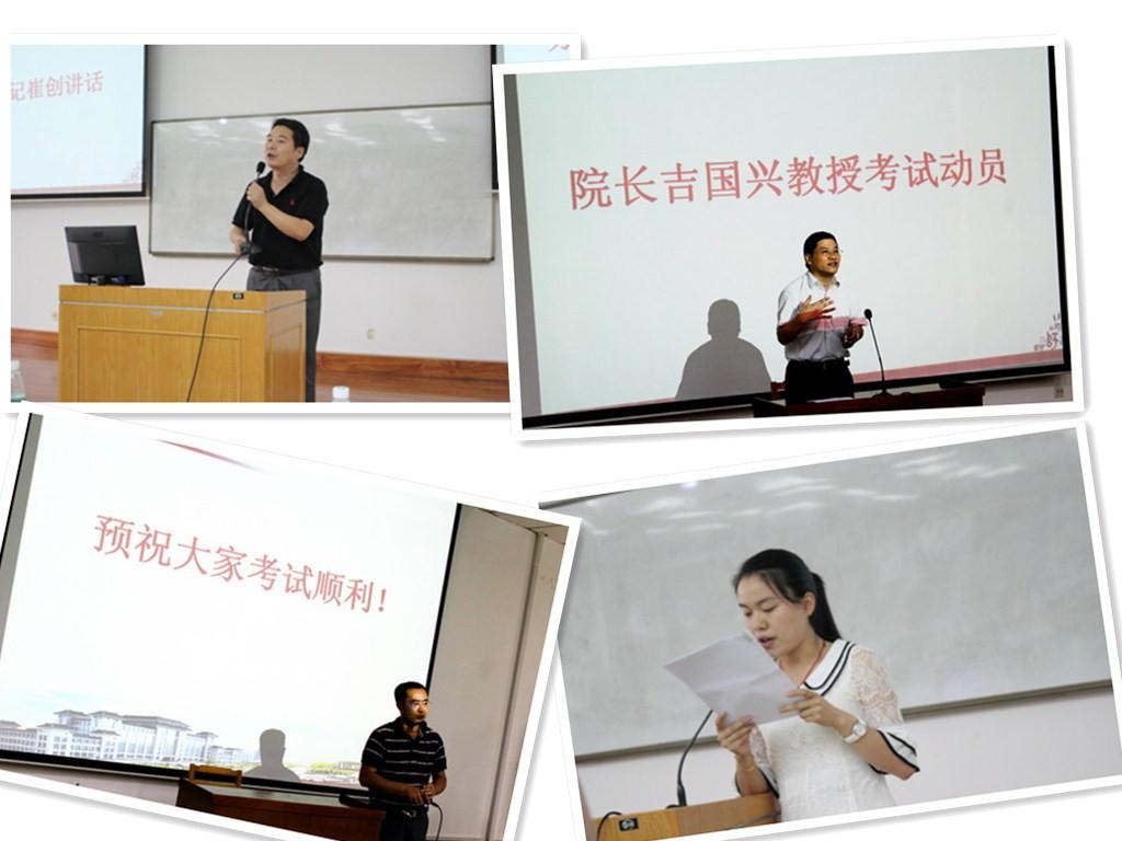 会上,首先由经理吉国兴对广大同学进行考试动员。从八个方面对同学提出要求和希望:一充分认识期末考试重要性;二排除干扰,认真备考;三遵守考场纪律;四按时参加考试,牢记考试时间地点;五遵守考场规则;六尊重监考,服从安排;七携带相关证件;八要自觉规避风险,切勿碰撞考纪“红线”