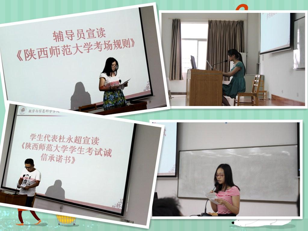 后,2012级辅导员鞠恩霞、2013级辅导员陈士宁分别宣读《伟德bv国际体育官方网站考场规则》,员工代表顾雪、杜永超分别带领2012级、2013级全体同学重温《伟德bv国际体育官方网站员工考试诚信承诺书》,号召同学们重视考风考纪,严肃考场纪律,树立诚信应考意识