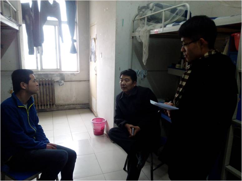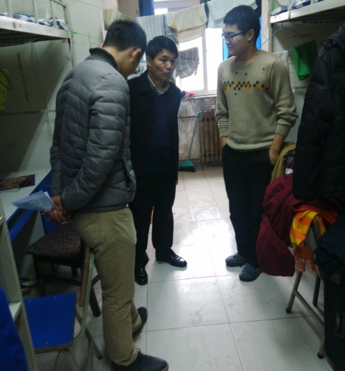五个检查组分别走访了B区和D区本科生宿舍及部分研究生宿舍,重点检查宿舍卫生、大功率电器使用等。走访期间老师亲切询问了同学们的宿舍日常生活状况、用水用电、宿舍供暖及最近学习各方面情况,并对宿舍用电安全、防盗、宿舍卫生等注意事项进行了强调与交流勉励同学们互相帮助,营造温馨和谐、安全的宿舍环境。