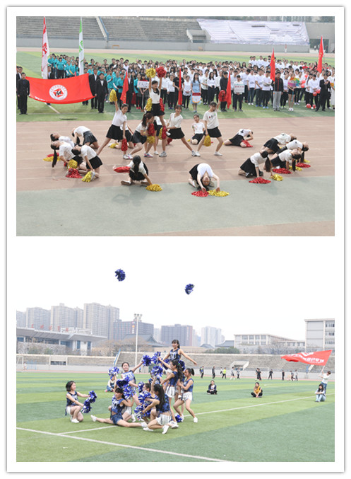 激情四射的啦啦操表演点燃赛场的激情,奔跑、跳跃、呐喊,操场立刻沸腾起来。