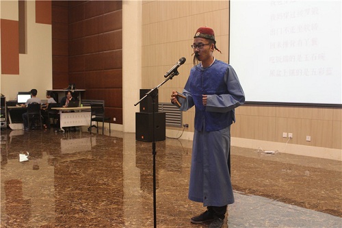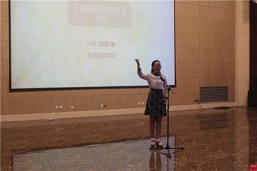 大赛以校戏曲研究会的老师们带来的开场歌舞《大家喜欢》拉开帷幕。本次比赛主要从戏曲韵味、形象仪表、音色音质、演唱技巧等方面,对参赛选手进行综合考评,参赛曲种包括京剧、秦腔、昆曲等8个曲种,晋级决赛的15位选通过戏曲演唱和戏曲文化知识竞答两个环节来进行展示。选手们的演唱选材新颖、多样,有清新婉转的《扬州小巷》,激情奔放的《穆桂英挂帅》,诙谐风趣的丑角戏《教学》,高昂激越的《三滴血》等,演唱更是有板有眼,字正腔圆,韵味十足,表演过程中有一人分饰两角,有声乐配合,有舞蹈辅助,精彩纷呈;对戏曲知识竞答环节涉及的戏曲起源、行当、技巧及代表作品、代表人物等文化知识,选手们沉着冷静、准确作答,深厚的戏曲文化涵养赢得评委老师的一致认可。