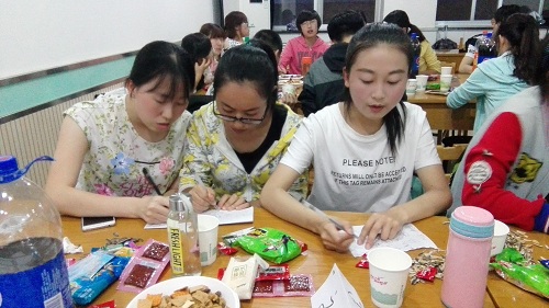 活动第二部分为小组趣味活动。同学们分为“文具盒”、“卷笔刀”、“固体胶”、“橡皮泥”四组。STEPⅰ.“速算比拼谁怕谁”,速算题目是活动前期搜寻所得,涉及小学、初中、高中、大学各个阶段的部分内容。在预热了几道题后,速算题目难度越来越大,大家的兴致愈渐高涨。STEP ⅱ.“趣味问答我最棒”,本次问答有必答题、抢答题、风险题,题目内容涉及数学、电影、生活常识、世界杯、游戏等多领域,大家竞相回答的场面十分热闹。STEP ⅲ.“音符传递看谁能”,这个部分主要是小组比划猜歌名,每个人都参与了进来,一首首歌曲,或励志,或抒情,或流行,或经典……这些趣味活动在潜移默化中加深了同学们之间的感情。