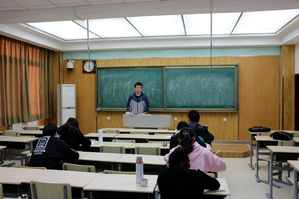 这次解题比赛,考场纪律要求尽量做到与期末考试一样严格。设置了监考员两名,试题在赛前绝密,参赛者不允许携带手机,背包等私人物品也统一放置。考试氛围良好,只闻细细翻页声与嘶嘶笔尖滑动的声音。笔墨挥洒,是同学们大脑飞速运转的体现,每一位参赛的同学都努力完成着每一道题目,冷静、沉着应试,当然也做到了诚信考试!