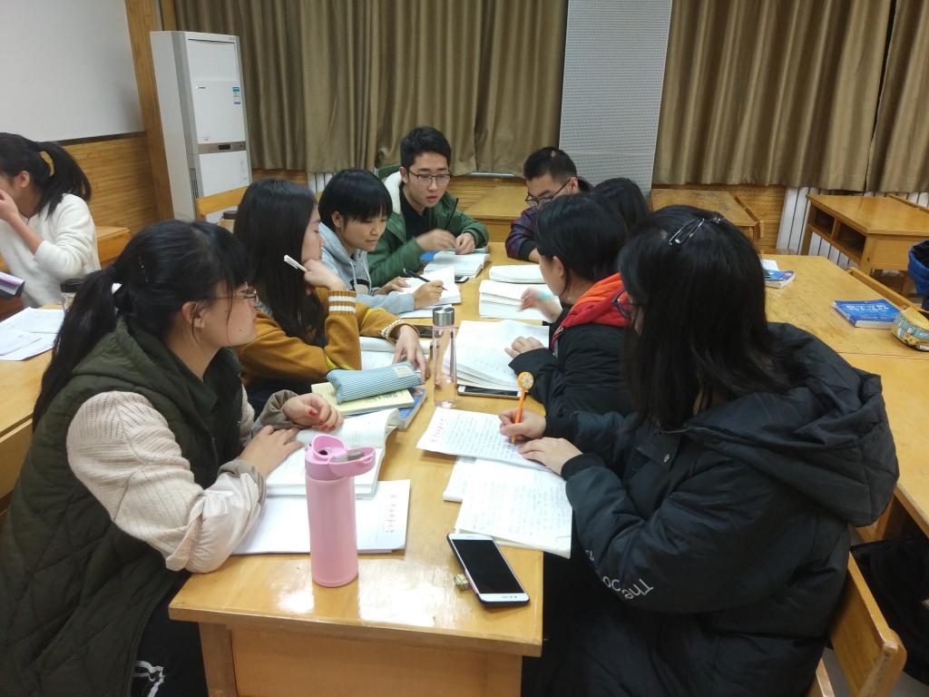 图为免师三班晚自习开展学习讨论