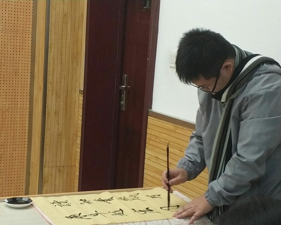 图为卓越班同学知青岁月演讲复赛毛笔字书写