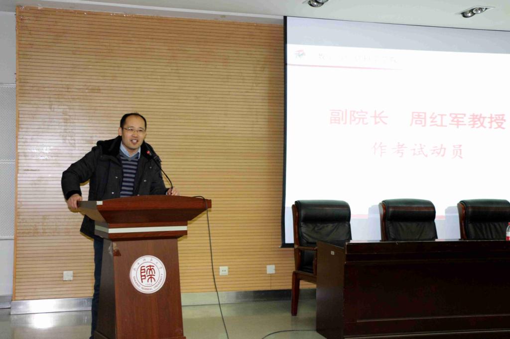 图为周红军副经理作考试动员