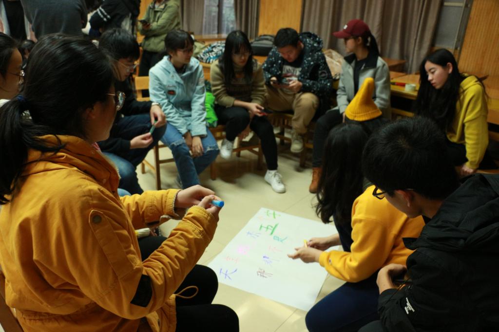 心理团体辅导期间,鞠恩霞简要介绍了新生适应性团体心理辅导活动的目的、意义以及需要注意的事项。接着,通过两个热身活动“大风吹”、“有家真好”拉开帷幕。热身环节的游戏在短时间内拉近了队员之间的距离,提升了大家参与积极性;紧接着进行的“生日分组”通过无声语言的交流彻底消除了队员们之间的羞涩和陌生,对彼此更加熟悉;随后的“团队组歌”给各小组布置了一个不可能完成的任务,在有限的时间内团队成员集思广益,相互配合,积极完成团队建设任务,将活动氛围推向高潮;活动最后通过60余人参与的解开千千结活动让大家感受到了团结的力量和集体的温暖,“结”解开的那一刻大家用欢呼声表达了由衷的赞赏。最后,组员们带着彼此的祝福和美好的希冀在互相揉揉肩捶捶背中结束欢乐的活动。