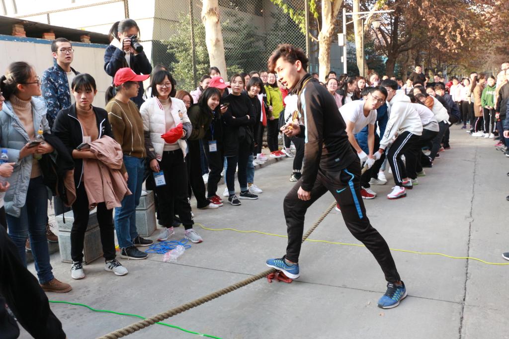 随后的跳大绳比赛,各班参赛队员展现出强大的团队力量,随着绳子舞动的节奏,队员们蹦跑跳动,跳跃过程中的欢笑,,观众的喝彩,展现出趣味运动会的欢乐时刻,成为一道独特的风景线。最后开始的是最为令人热血沸腾的拔河比赛,比赛的赛制为六进三,随后三进二,最后进行冠军争夺赛。随着一声哨声,比赛终于开始。大家精神抖擞了一下,一个个像小牛娃似的,拼命地拉着赛绳,谁也不让谁。随着四周同学的喝彩,绳子上的红领巾一会儿向左一会儿向右……