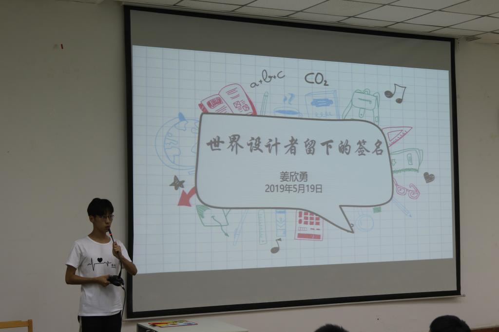 他自信从容、表达流畅,运用多种方式,生动而全面地向在座同学科普了数字π的相关知识。