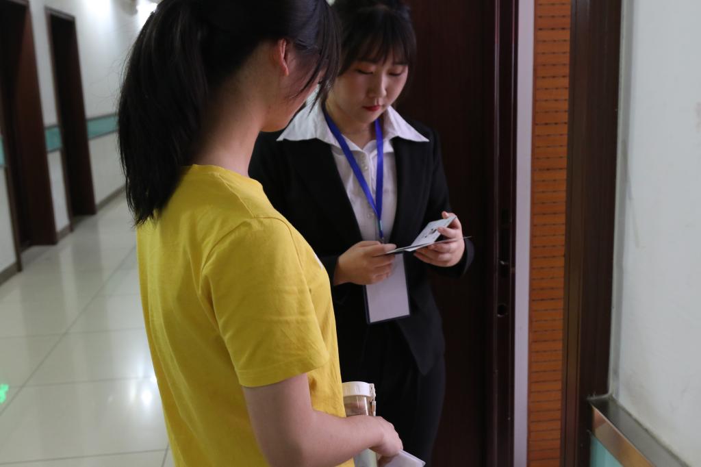 考前20分钟,参赛者有序进入考场,主动地关闭手机,自觉地将手机与手提包放置在小件寄存处,监考及其余工作人员也早早就位。